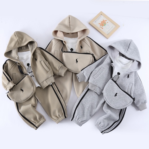 New Boys 'Winter Casual Dreiteiliger Baumwoll anzug Verdicktes Kapuzen vlies mit Cartoon-Muster-Reiß verschluss