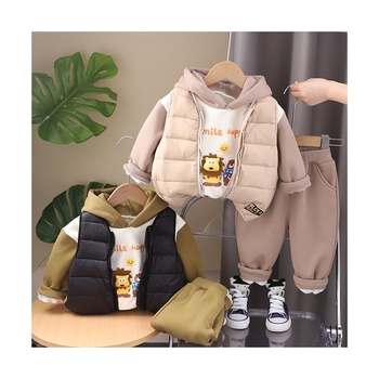 Neuankömmling Kinder Winter 3 Stück Anzüge Weste Mantel und Hoodies und Hosen Verdickung Casual Boys Kleidung Sets
